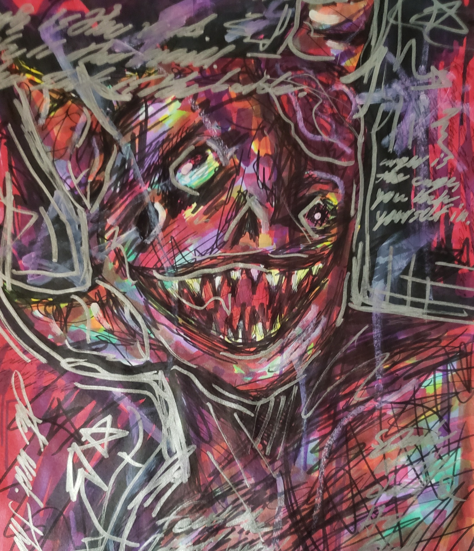 Harrastan piirtämistä ja maalaamista myös vapaa ajalla. Myyn töitäni läheisilleni ja välillä suunnittelen myös tatuointeja. Tykkään tehdä paljon tussi- ja lyijykynäteoksia, tyylini on usein räikeä ja värikäs mutta kykenen myös tekemään erilaisilla tyyleillä.